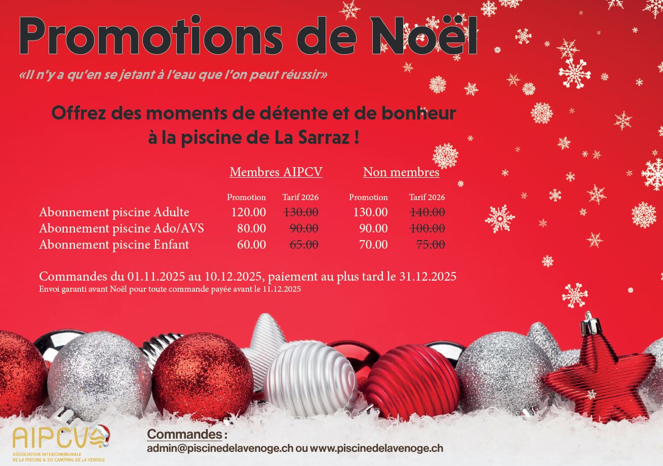 Non classé 31 octobre 2025 Piscine de La Sarraz – Promotions de Noël Pour vos cadeaux, pensez aux promotions de la Piscine de La Sarraz. Promo-de-NoelTélécharger