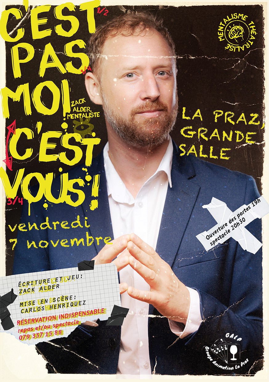Zack Alder reprend les codes du mentalisme pour mieux les détourner et propose un moment rare : un mentalisme sincère, où l’on parle autant de perception que d’identité, de bluff que de vulnérabilité, de mémoire que de fiction partagée.