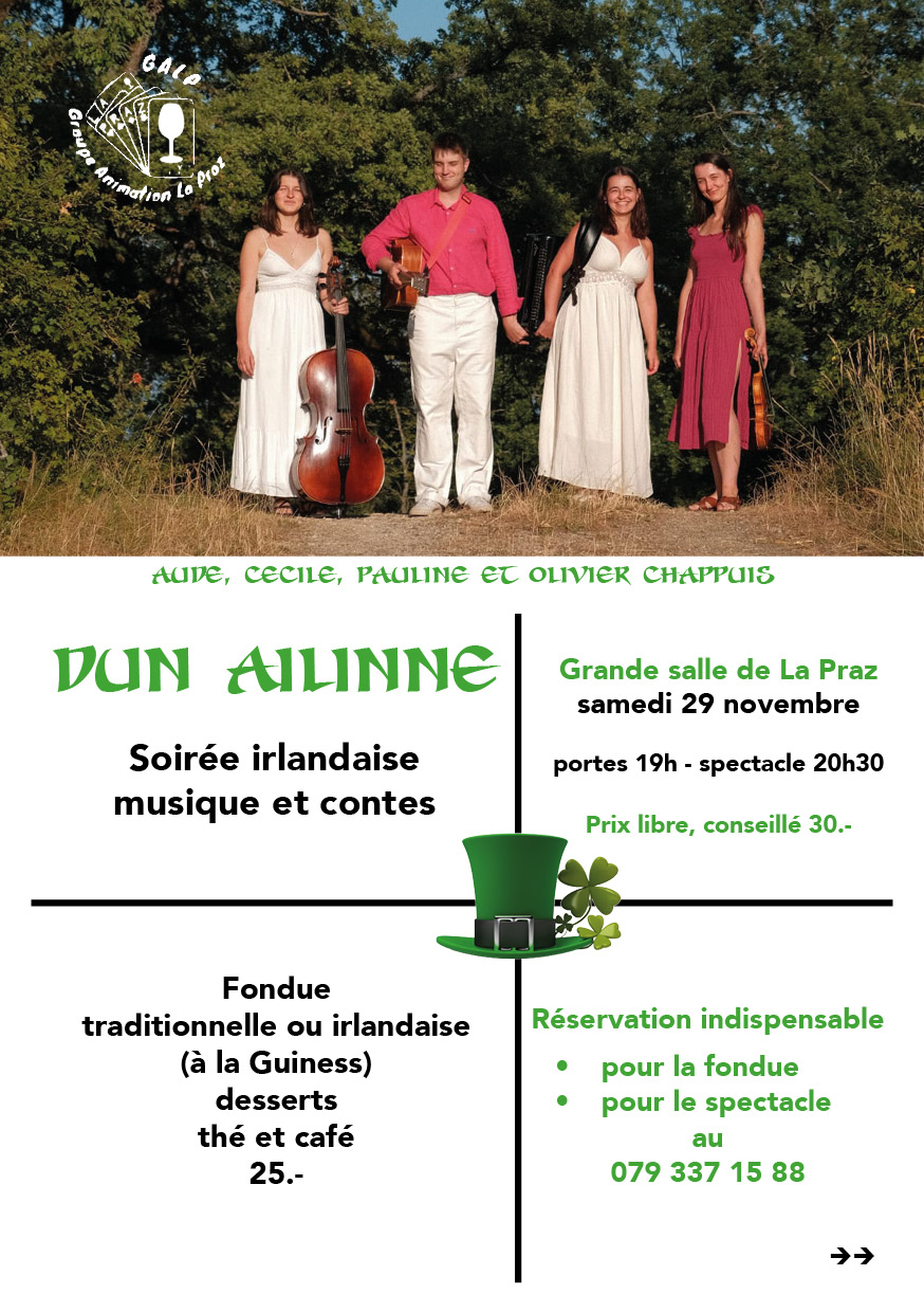 | 29.11.2025 | Concert Dún Ailine (Soirée irlandais) | Organisation GALP | Grande Salle |